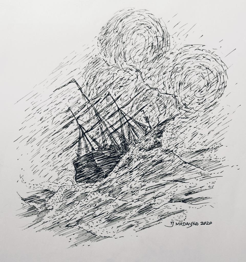 Inktober 17 Prompt: STORM 🌀 #inktober #inktober2020 #inktoberstorm #inktober2020day17 #inktober52 #storm #ocean #ship #sailor #waves #juvelmodaynoart