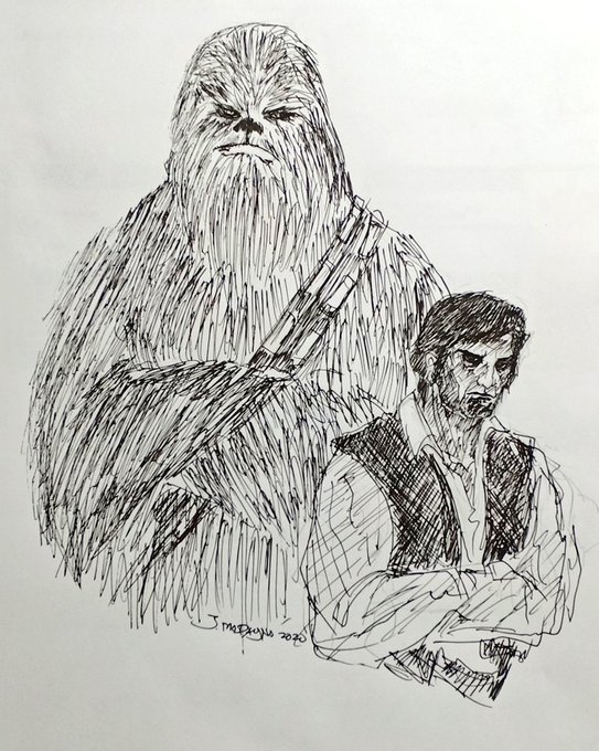 Inktober 25 Prompt: BUDDY (Scruffy Nerf Herder) #inktober #Inktober2020 #inktober52 #inktober2020day25 #inktoberbuddy #buddy #starwars #hansolo #chewbacca #scruffynerfherder #solo #milleniumfalcon #fanart #juvelmodaynoart #pilotgtech