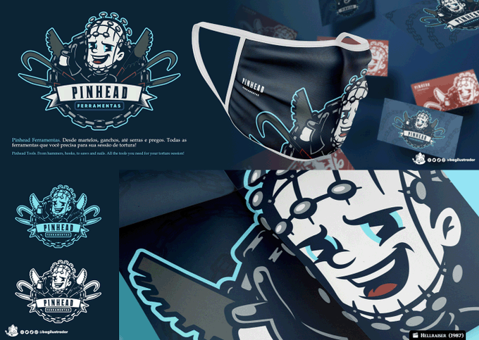 Vocês curtem filmes/séries de terror? No ano passado no #inktober eu fiz 31 identidades visuais, uma por dia, referenciando personagens de terror como se eles tivessem um comércio ou lojinha. Deu maior trabalhão, mas adorei fazer haha Tem todos aqui: behance.net/gallery/130595…