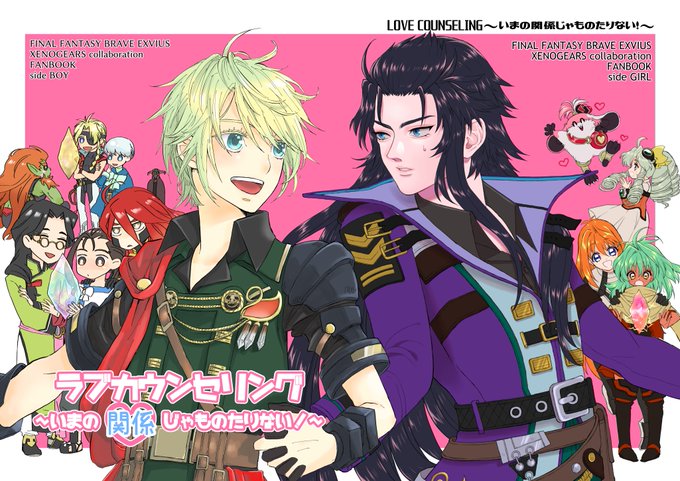 2/12TMの新刊です~!FFBE×ゼノギアスクロスオーバー合同誌、お相手はみやこさん(@mooooonpuchi)!レインとラスウェルの恋愛相談にのるゼノギアスキャラな本です。Pixivにてサンプルもっと読めます!よろしくお願いします~!A5/28P/¥400(会場価格)pixiv.net/artworks/10514…