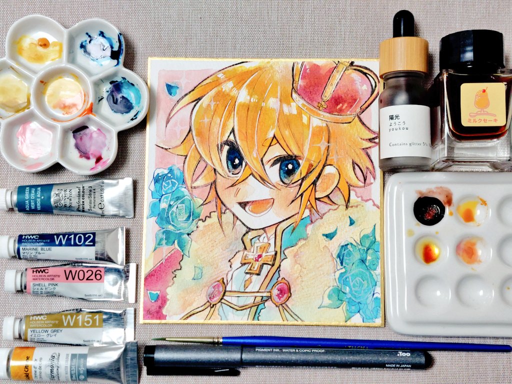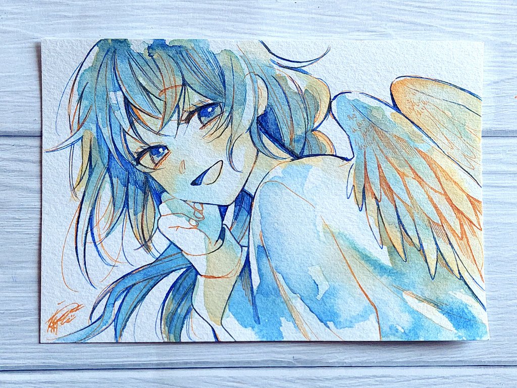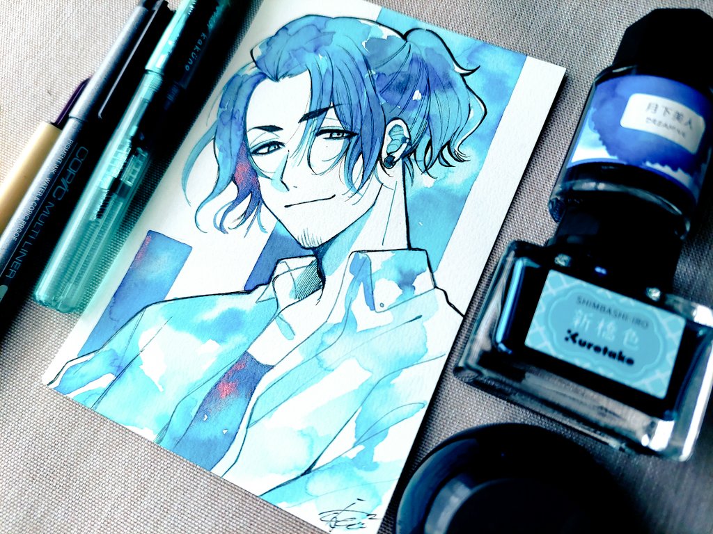 #水彩発掘隊 素敵なタグ、参加失礼します! 水彩だったり万年筆インクだったり 色鉛筆だったりボールペンだったり 色々使ってお絵描きしてます(σ*´∀`) 紙➡️ホワイトワトソン 色紙 twitter.com/i/web/status/1…