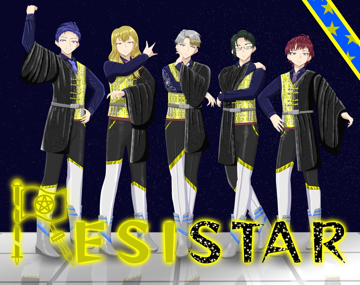 お待たせしました! 新アイドルグループ、「resistar」です! 衣装名は「Act so sus」です! ツリーに紹介文を載せていきます! #DYE3MYWAY #春の創作クラスタフォロー祭り