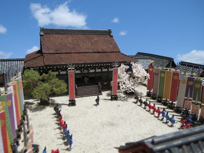 #ツイッターで楽しむ展覧会 ・令和記念/古式天皇即位式の情景(京都御所紫宸殿) ・創建時の銀閣寺東山殿(銀閣黒漆) ・戦国時代、今川義元居館の今川館 ・戦国時代、武田信玄居館の躑躅ヶ崎館 と一風変わった再現ジオラマ作ってます。