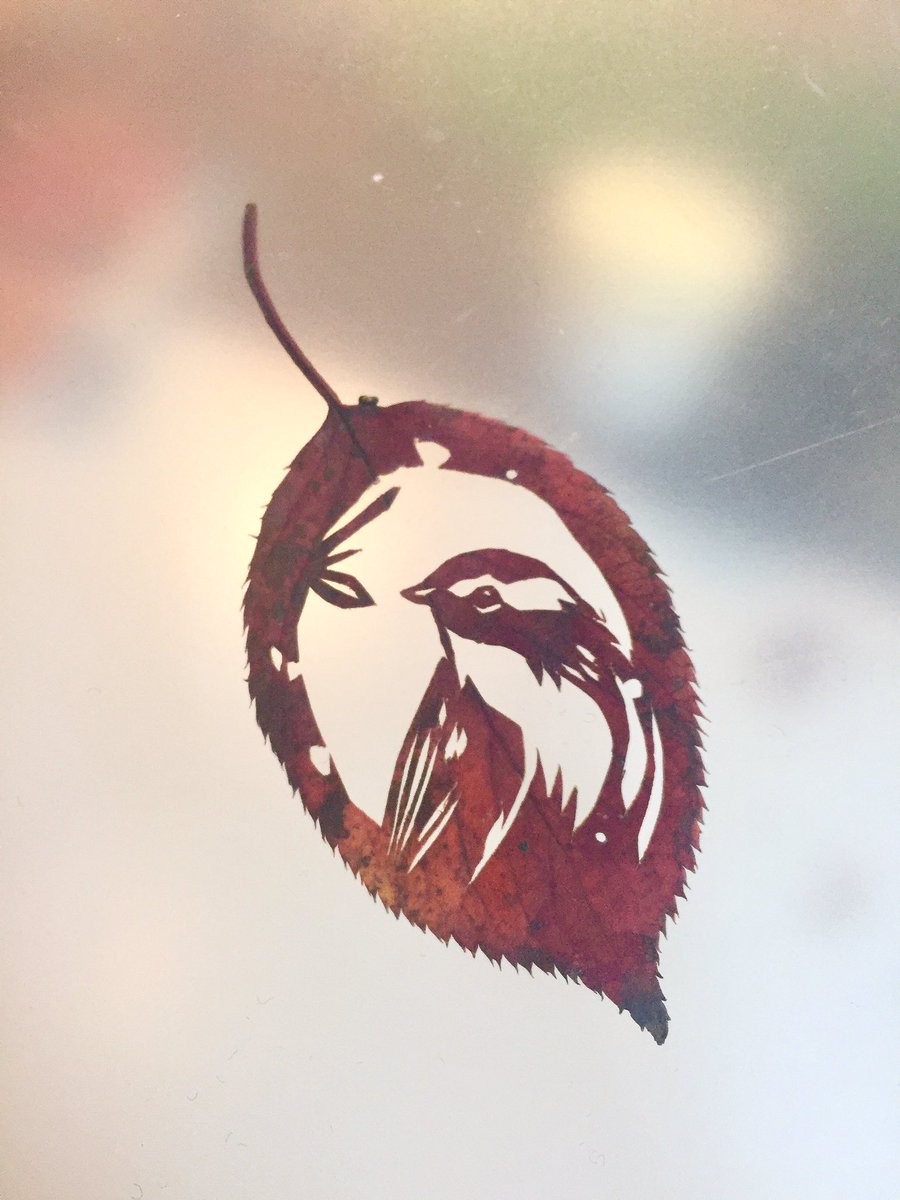 今日の切り絵 落ち葉の中に小鳥 #フリーハンド切り絵 #落ち葉アート