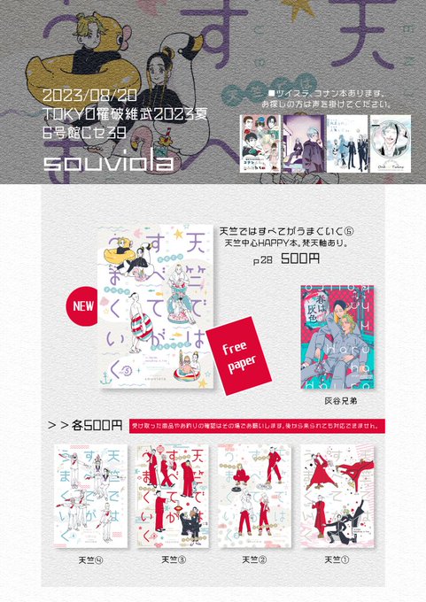 (1/3) 天竺ではすべてがうまくいく5/B5/p28/500円(イベント価格) web再録+描きおろし 天竺軸中心、梵天軸あり、灰谷兄弟多めのギャグ ム三と半稀とイヌココもちょっと 【書店予約受付中】8月の新刊 | naka #pixiv pixiv.net/artworks/10979…