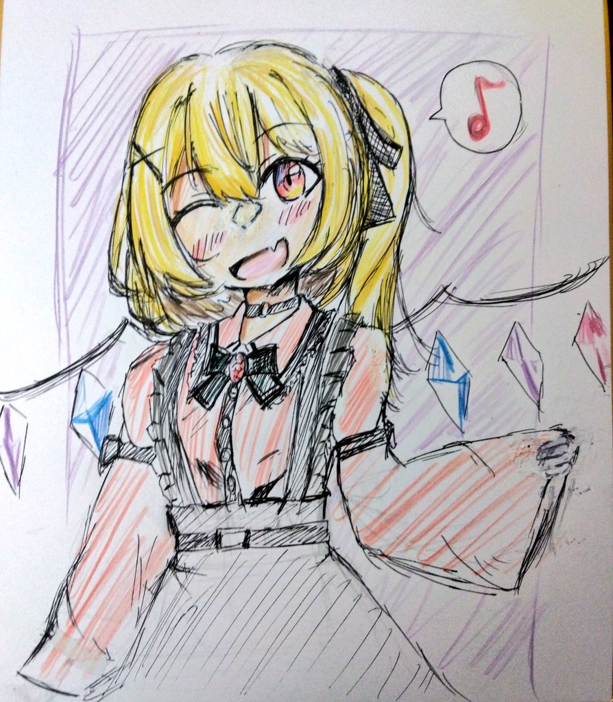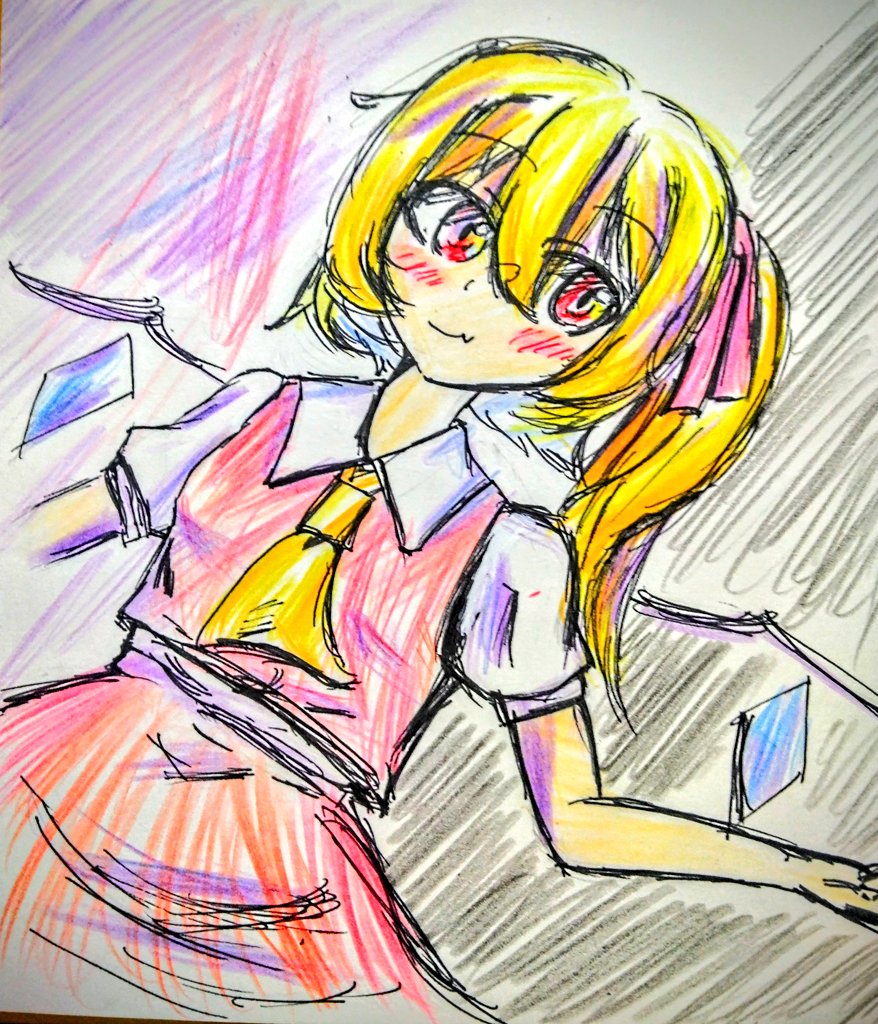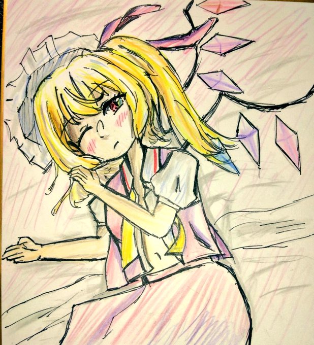 #東方Project #フランドール・スカーレット #絵描きさんと繋がりたい ここ1週間で描いた3枚のフランちゃん。(今気付いたけどそれぞれ帽子被ってないね) 僕の中では多く描けたし、前の自分と比べると成長したなぁって感じた。 おててをもっと可愛く描けたらいいね。
