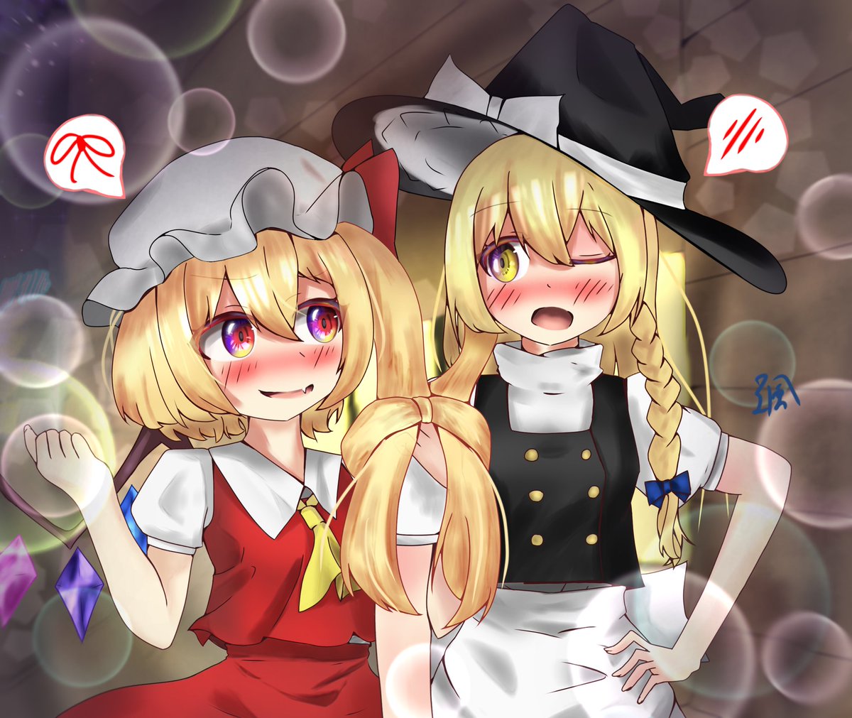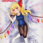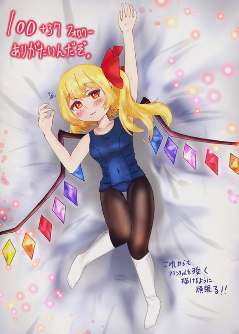 #東方Project #フランドール・スカーレット スク水+タイツ+ハイソックスのフランちゃん描いたぞ。 あと、100人記念忘れてたので、この際に、、、 100+37フォロワーありがとう!!!