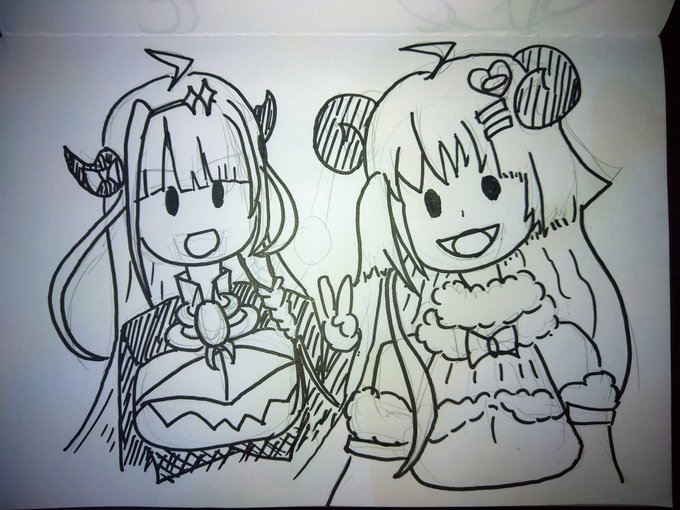 ヘタクソだけど配信中に一緒に描いてました わためがなんか怖くなっちゃったけど、しょうがないよねえ? #わたココ #みかじえ #つのまきあーと