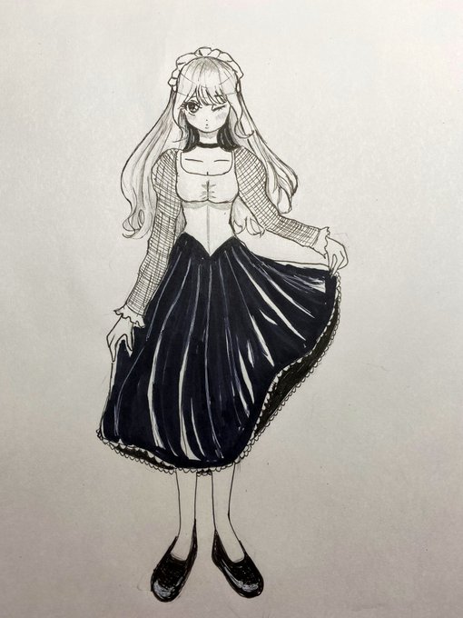 色は手抜きしたけどメイドちゃん完成〜〜!らくがきたのし。 #イラスト