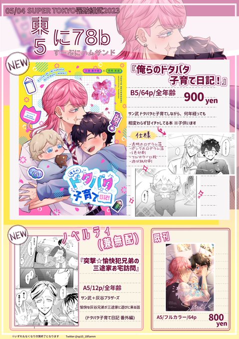 サン武 「俺らのドタバタ子育て日記!」③ 支部にも少し多めにサンプル(+α)あげてます pixiv→ pixiv.net/artworks/10745… 通販:申請が通りましたら後日詳細ツイ流します🙌(予約分のみ、GWあたりにカートが開くようにできたらなと考えてます)