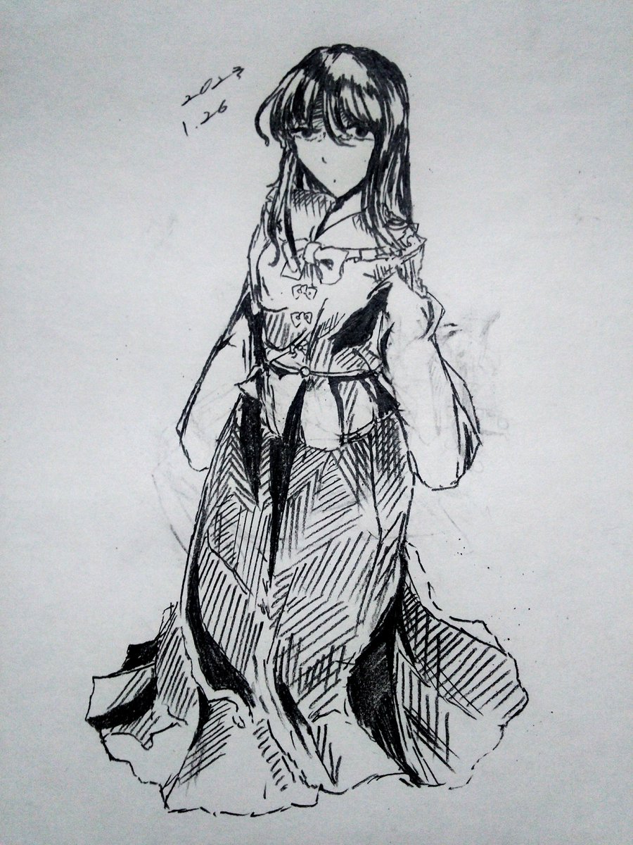 2 4 #深夜の真剣お絵描き60分一本勝負 #四季映姫・ヤマザナドゥ ミネルバの梟は迫り来る黄昏に飛び立つ 23/01/09 02:04