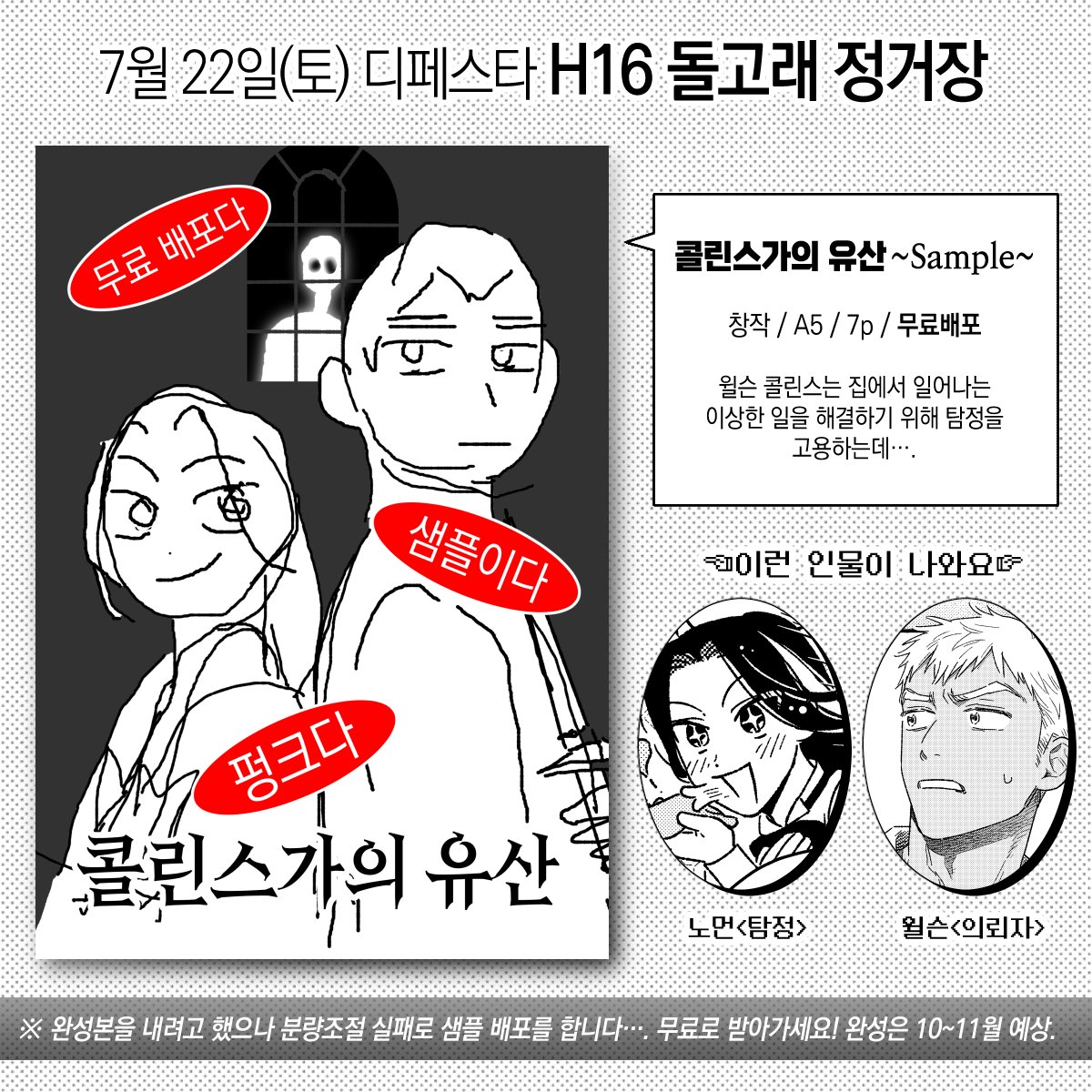 ❤️7월 22일(토) 디페스타 / H16 창작 회지 샘플을 무료배포합니다!