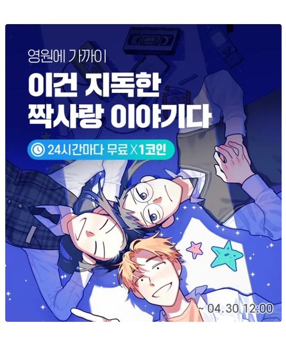 안뇽하세요? 레진코믹스에서 제 작품 <영원에 가까이>가 4월 30일까지 할인 이벤트를 한다네요🥰👽