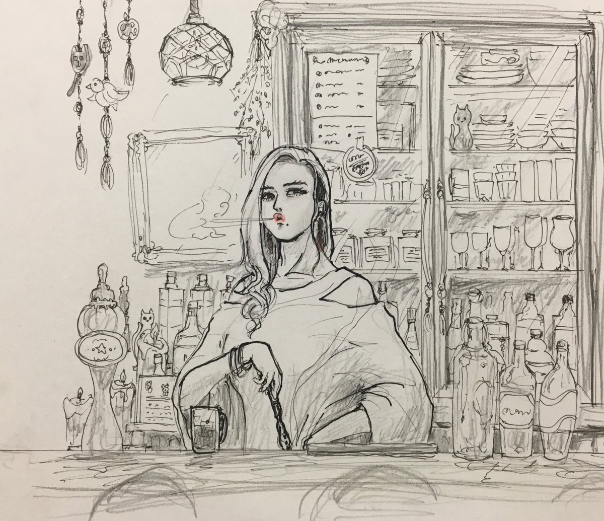 飲みに行きたいので、気晴らしに魔女がやってるバーを開きました。 オリキャラとか来て(描いて)くれたら何か飲み物等出し(出す絵を描き)ます。 落書き遊びに付き合ってくれる方いらしたら是非おいでください♪ #魔女バーにおいでよ