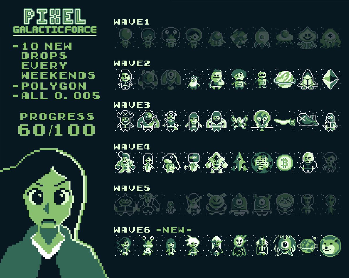 "Pixel Galactic Force" Finally got back in action! WAVE 6 is now available. Please take a look.😀 Pixel Galactic Force (Polygon) opensea.io/collection/pix… Adventure Log (ETH) opensea.io/collection/pix… #NFTs #NFTTHAILAND #NFTCommunity #nftcollector #pixelart #opensea #ドット絵