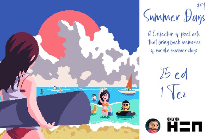 @_synthmind "Summer Days"😀🏖️☀️ My first series of pixel arts on #hicetnunc now available on henext. 1 henext.xyz/o/422339 2 henext.xyz/o/430375 3 henext.xyz/o/475907 4 henext.xyz/o/501227 1 TEZ / 25ed #NFTTHAILAND #hicetnunc2000 #HEN #CleanNFTs #pixelart #ドット絵