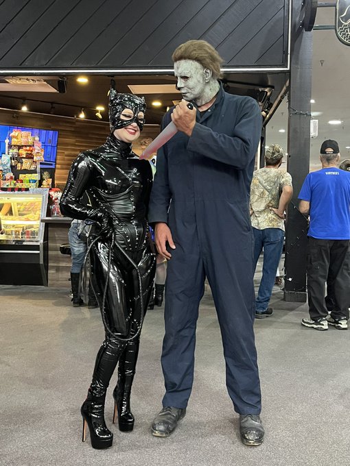 👀 hey Michael #MichaelMyers #Halloween #HalloweenEnds #catwoman #cosplay #convention