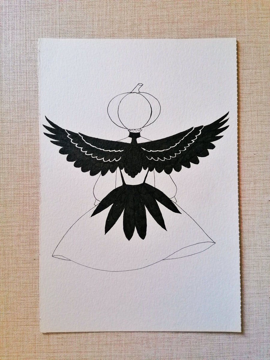 I cheated a bit by drawing Lady Beatrice from behind which saved me from drawing her face #Inktober #inktober2021 #raven #illustration #ink #wings #oc #pumpkin #originalcharacter