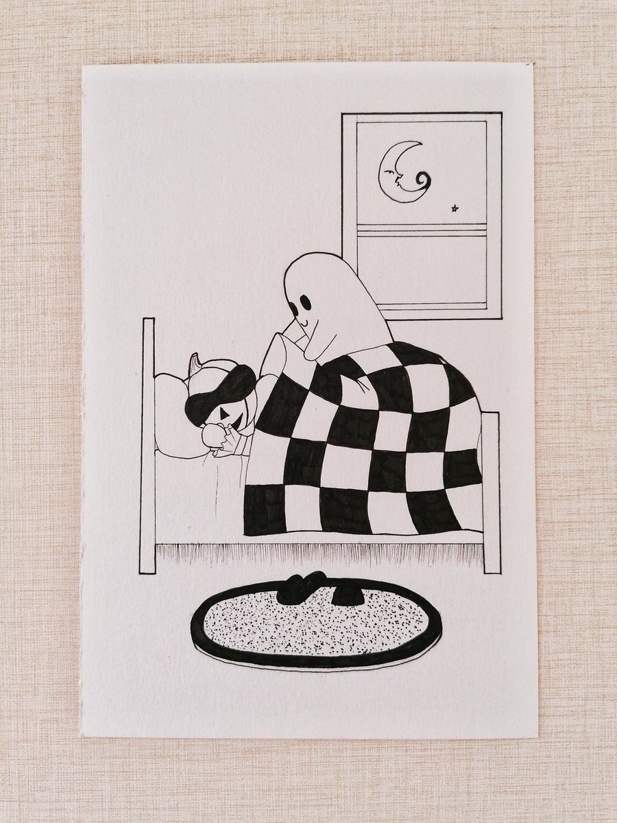 Make sure your friends are getting enough sleep. #inktober2021 #inktober #moon #sleep #oc #illustration #artwork #art #ghost #ink #bestfriends #pumpkin #pumpkinperson #window