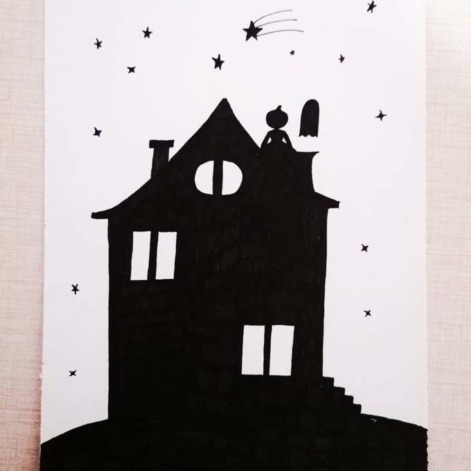 I forgot to buy a black marker. Colouring this took an eternity!! #inktober2021 #inktober #roof #illustration #art #artwork #ArtistOnTwitter