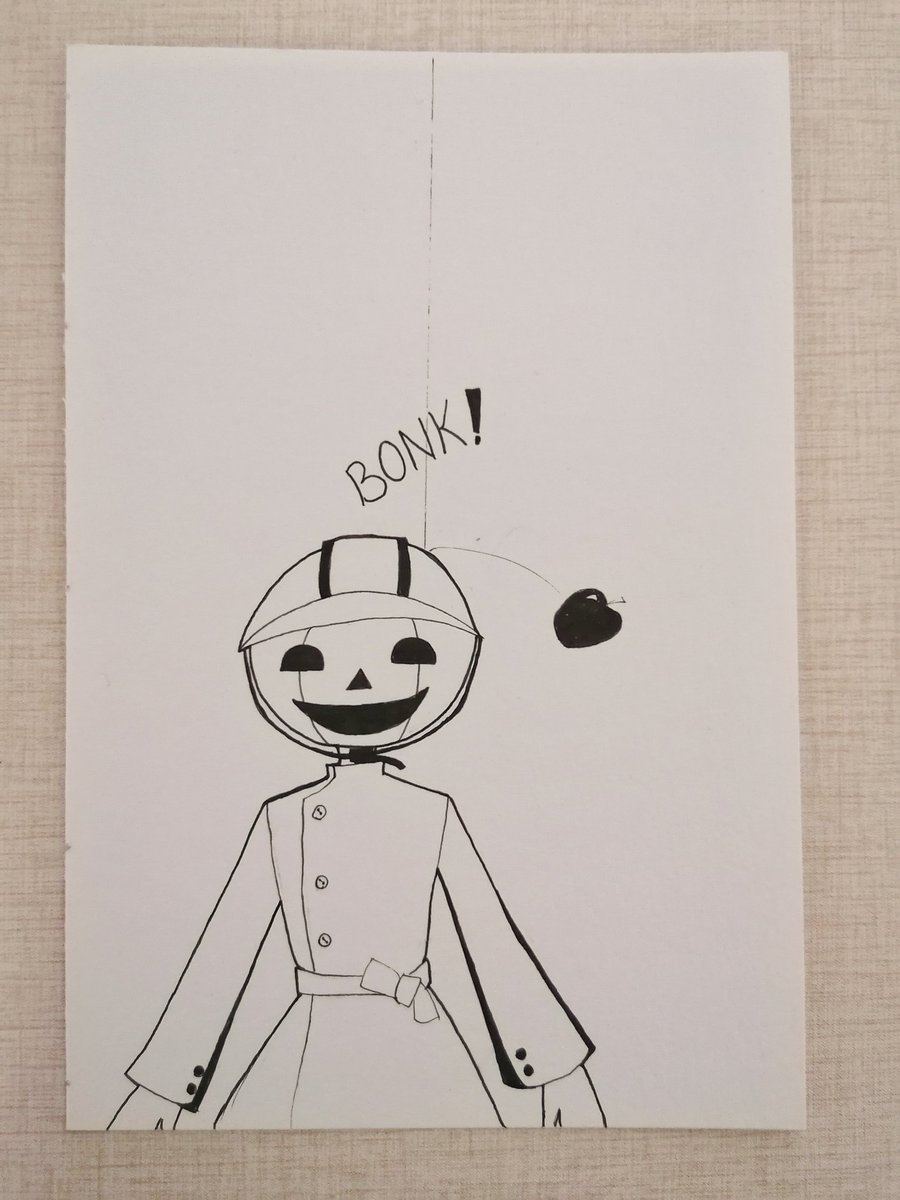 She definately learn from past experiences. #inktober2021 #inktober #helmet #apple #improveadaptovercome #funny #illustrationart #originalart #originalcharacter #ink #artchallenge #artwork #pumpkinperson #inktoberday15