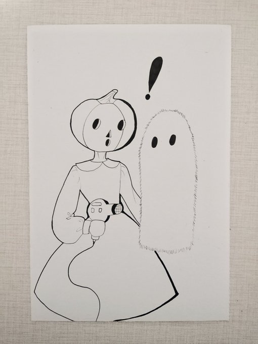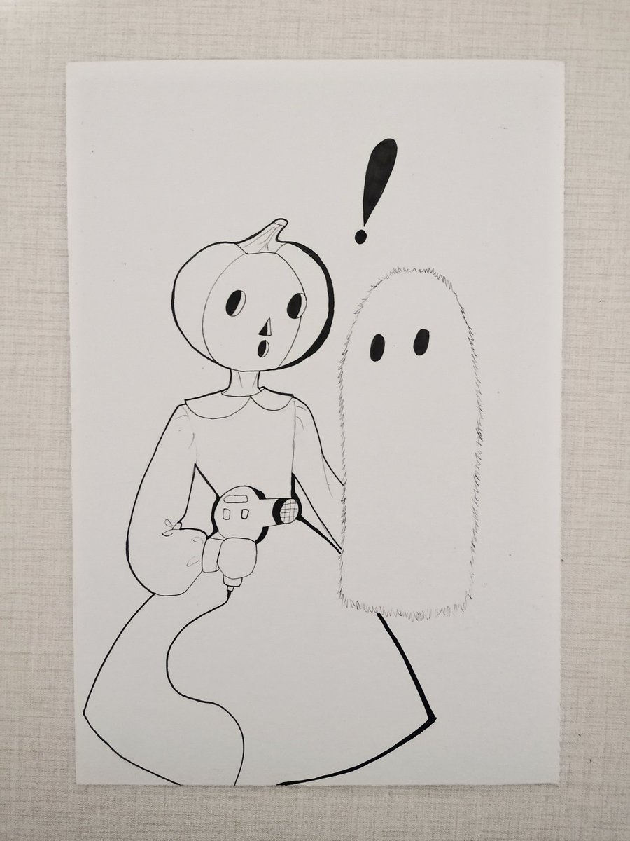 Don't blow dry your ghost friend. #inktober2021 #inktober #fuzzy #artchallenge #art #illustration #oc #ghost #pumpkinperson #bestfriends #blowdry #pumpkin #artwork #ArtistOnTwitter