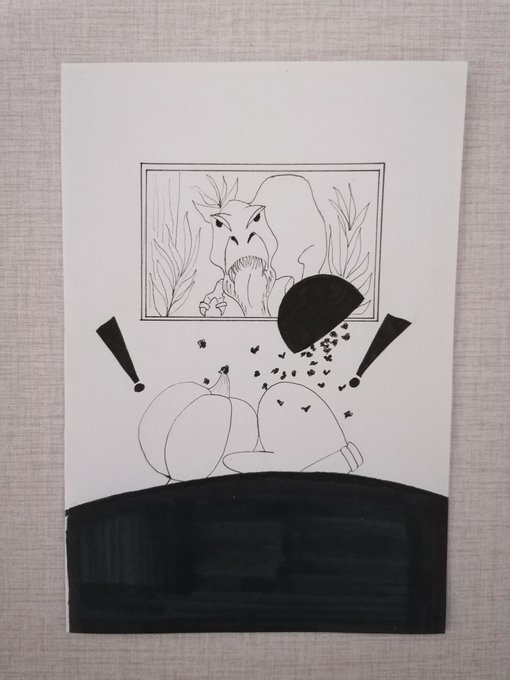 They are VEEEEERY happy dinosaurs are extinct. #inktober2021 #inktoberprompts #extinction #inktober #originalcharacter #ghost #halloween2021 #artist #artchallenge #illustration #illustrationart #movienight #ArtistOnTwitter