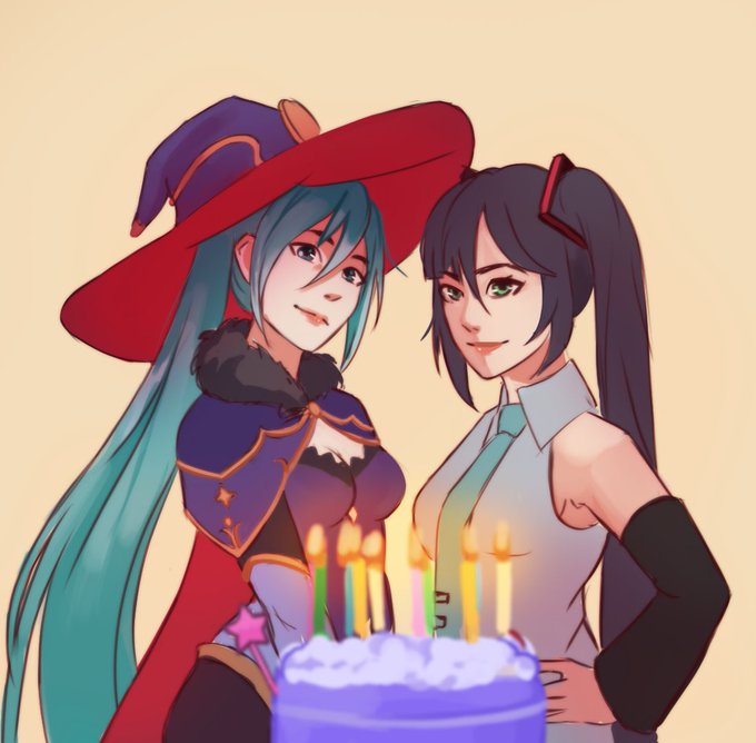 Today is the birthday of two wonderful girls with cool ponytails💙 #MonaMegistus #HatsuneMiku #genshinimpactfanart #GenshinImapct