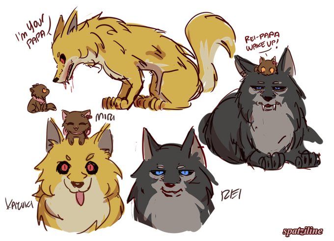 Before I go to sleep, have this random doodle of wolves Kazuki and Rei + kitty Miri #BuddyDaddies