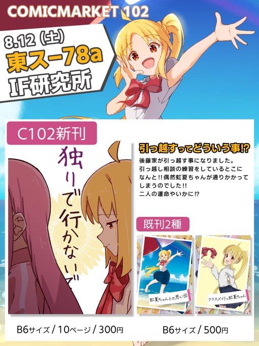 #C102お品書き です! 8月12日(土)/ コミケ1日目 / 東4ホール 東ス-78a IF研究所 新刊、ぼ虹漫画持っていきます! #C102 #コミックマーケット102 #ぼっち・ざ・ろっく