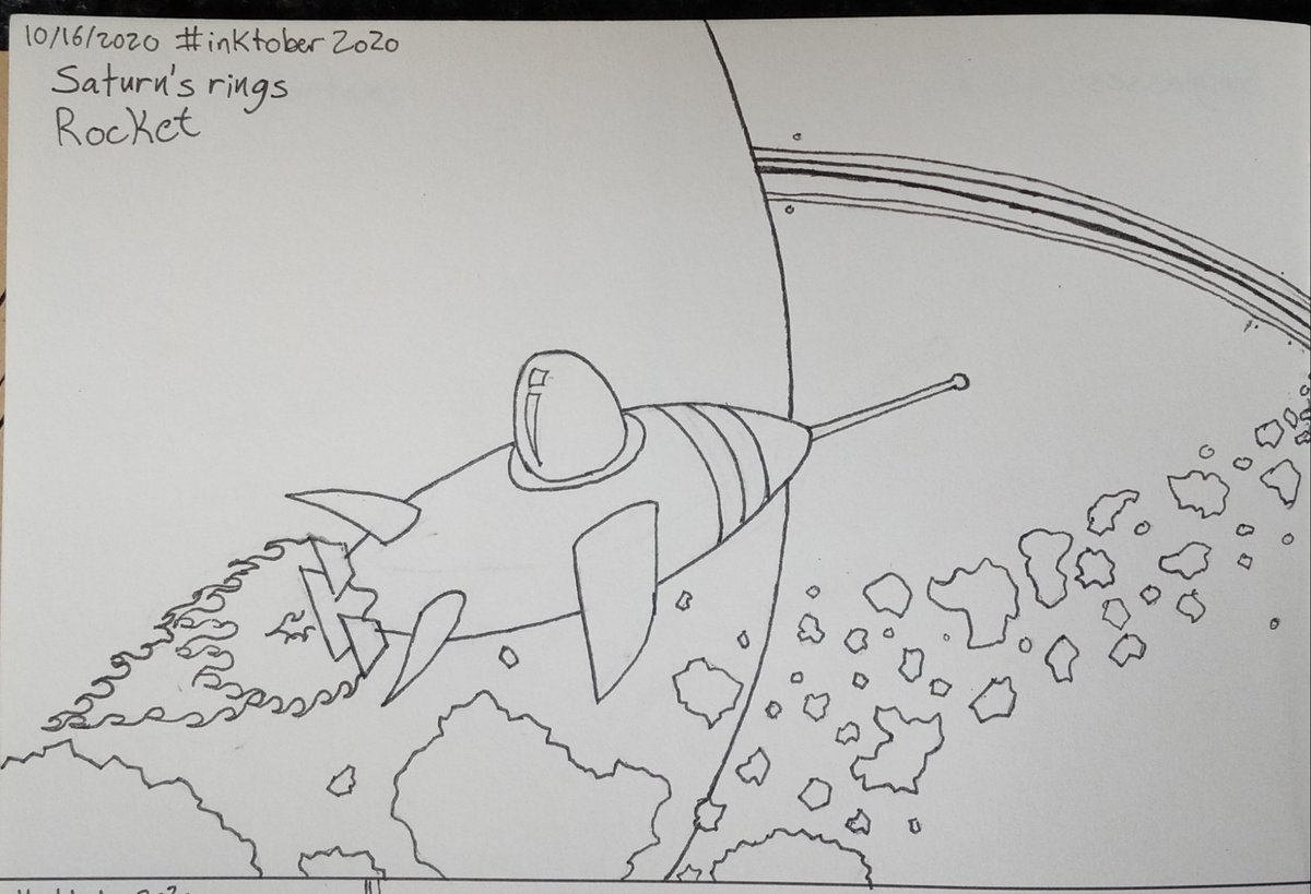 The #lineart #sketch for #inktober2020day16 Rocket 🚀! Hoping I get time to finish the rest of it but I work 14 hours today! #Inktober #inktober2020 #inktober2020rocket #inktoberrocket #PenandInk #blackandwhite