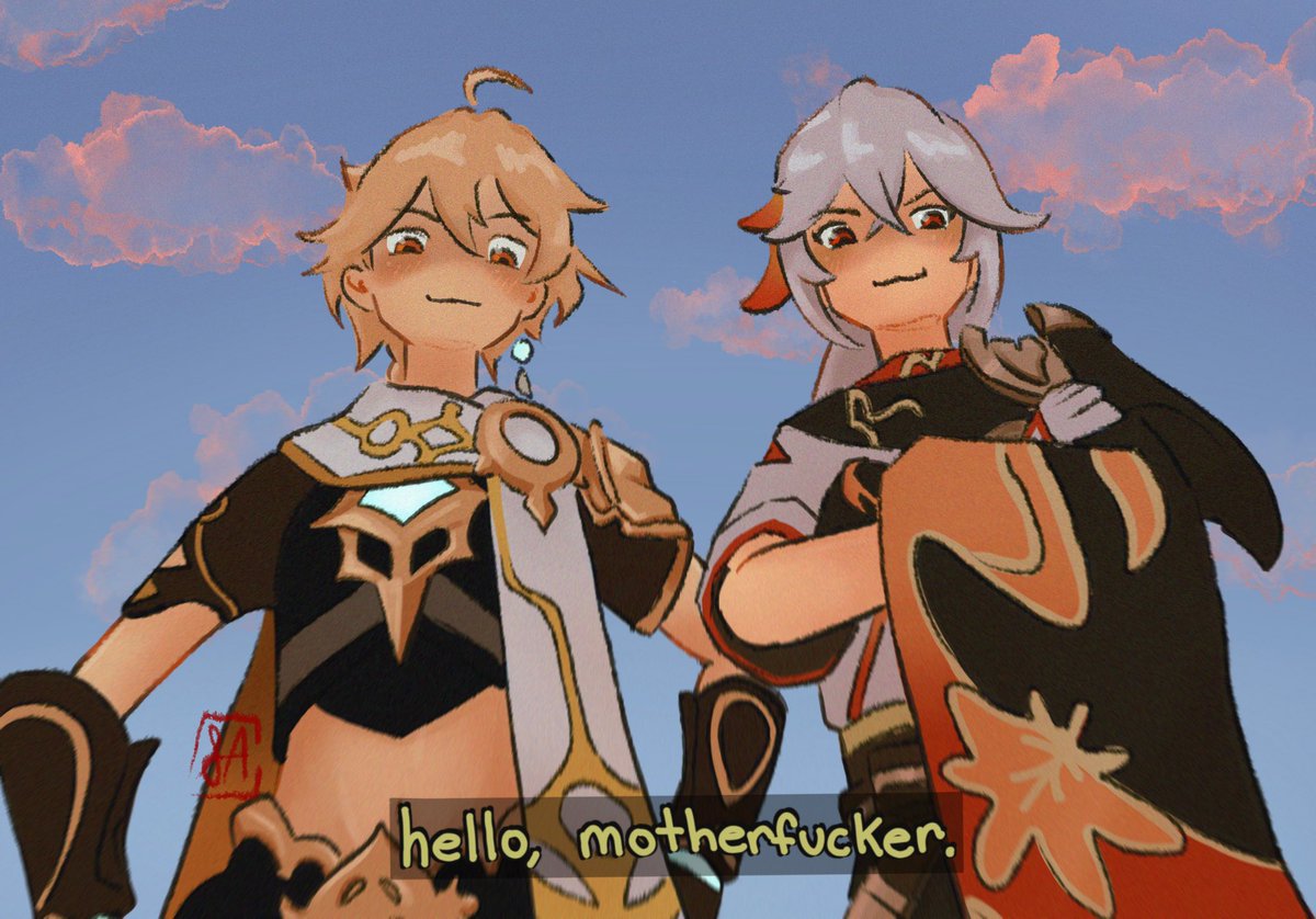 pov youre about to get your ass handed to you by a couple of twinks #genshinimpact #genshin #kazuha #aether #genshinimpactfanart