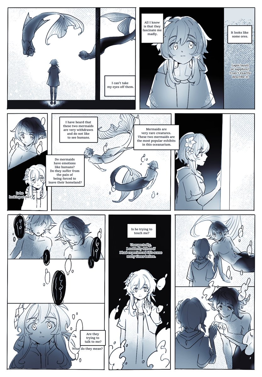 (1/3)ENG ver. Finally finish the chapter 2 of Mermaids AU🧜🏻♂️😇(10p,read from left to right.) use software to translate it, hope it can make sense😀 #chonglumi #Xinglumi #重蛍 #行蛍 🌊link to chapter 1:twitter.com/spi_bingz_rit/…