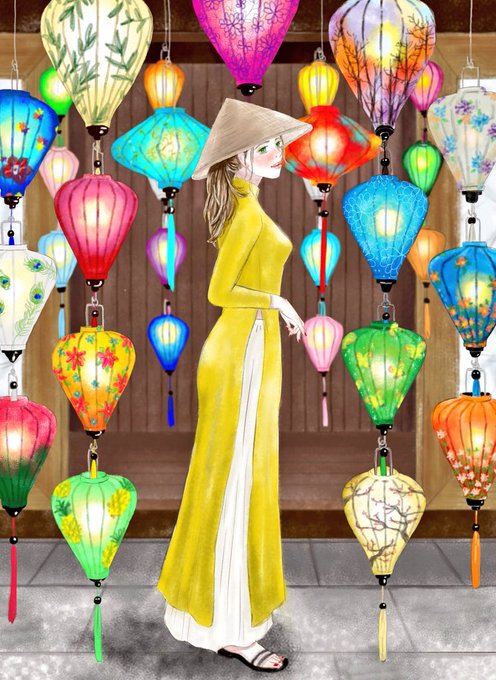 4年前、ベトナムのランタン祭り行ったことを思い出して、描いてみまし♥ #ベトナム #ホイアン #イラスト好きな人とつながりたい #ランタン祭り #アオザイ #デジタルイラスト #夏を感じるギャラリー2021