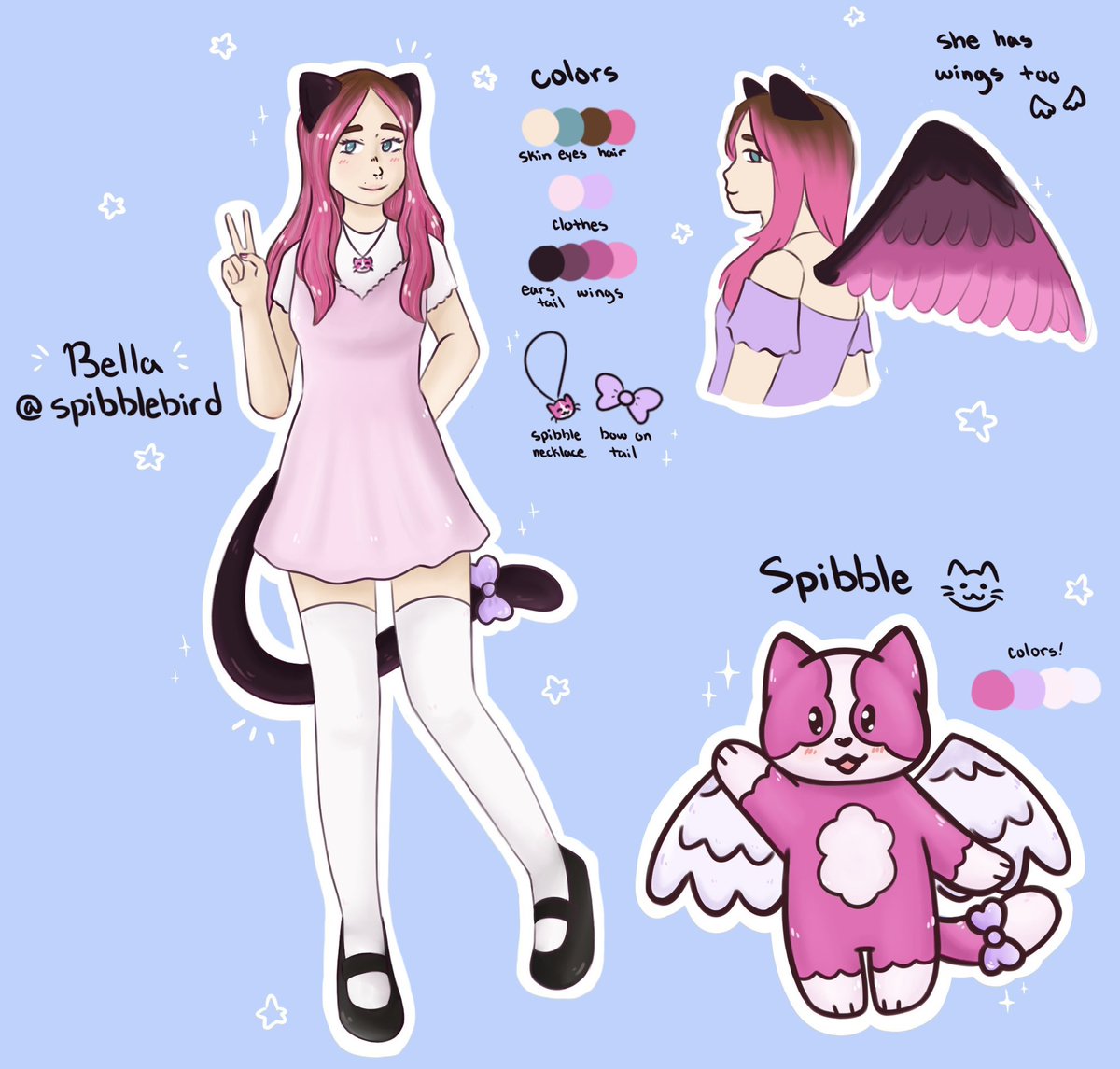 my persona ! and new little cat thing they are now spibble ! 🎀🐱 #originalcharacter #artwork #digitalart #cute