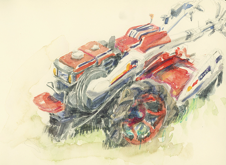 畑にたたずんでいた妙にかっこいい機械 #水彩 #watercolor