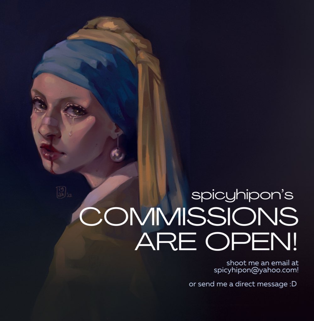 ❗️Commissions are OPEN ❗️ Hello! I am once again open for commissions, I will be accepting 7 slots for each month. Kindly dm me for reservations and other inquiries. RTs are highly appreciated! <3 Terms and Conditions: spicyhipon.carrd.co/#terms ✉️: spicyhipon@yahoo.com