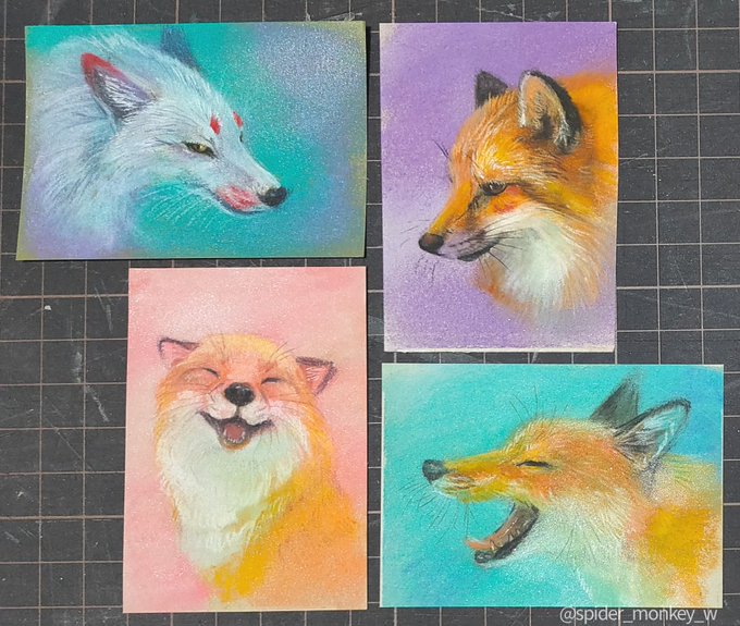 いよいよ明日から始まります🦊 3日間よろしくお願いします! #もふもふしっぽのきつね達展4 会場🦊くまのみギャラリー(大阪中津) 会期🦊4/9(土)−11(月) 時間🦊13-19時(最終日17時まで) #パステル画
