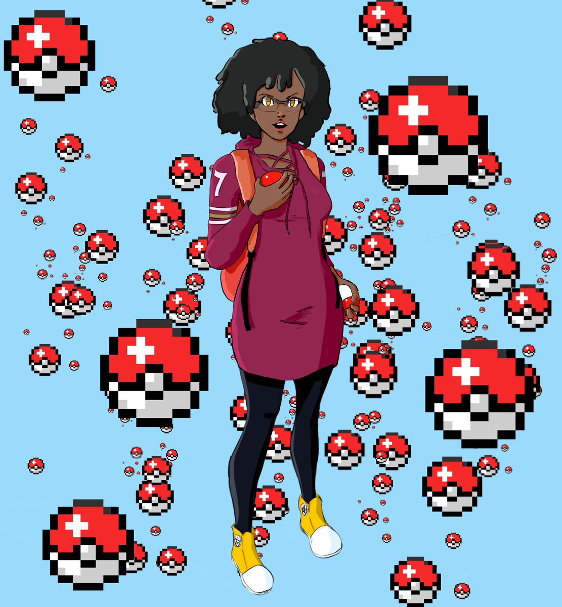 Finished this pic of my cute gf as a Pokémon trainer I hope she likes it 🐸❤️❤️ #cutiesaturday #Pokemon #ArtistOnTwitter #under1kgang