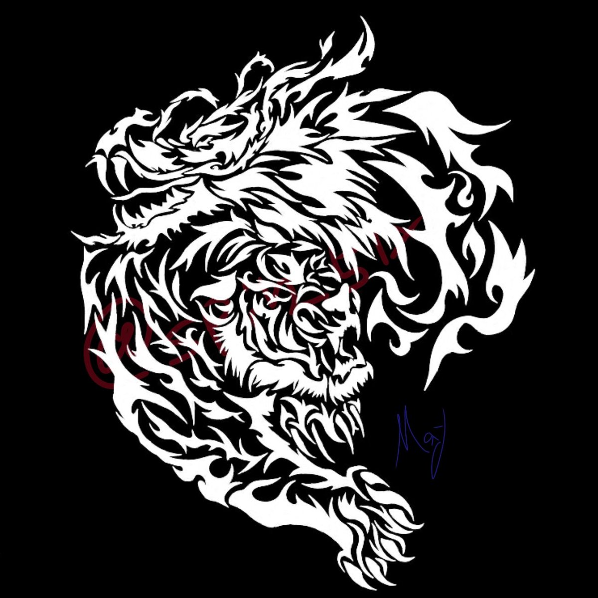 クリスマスで一粒万倍日で縁起の良さそうなもの #トライバル #龍虎 #龍 #虎 #イラスト