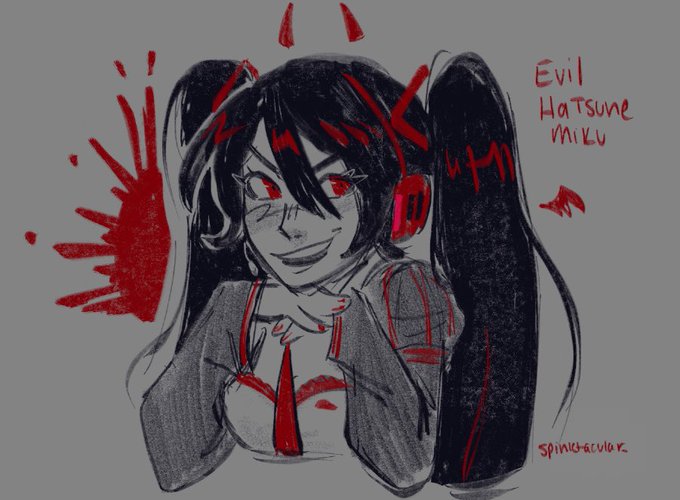 Drew like a dark fucked up version of miku haha. Just a glimpse into my dark reality. A full stare into my twisted perspective would make most simply go insane lmao /ref #HatsuneMiku twitter.com/swagamicchi/st…