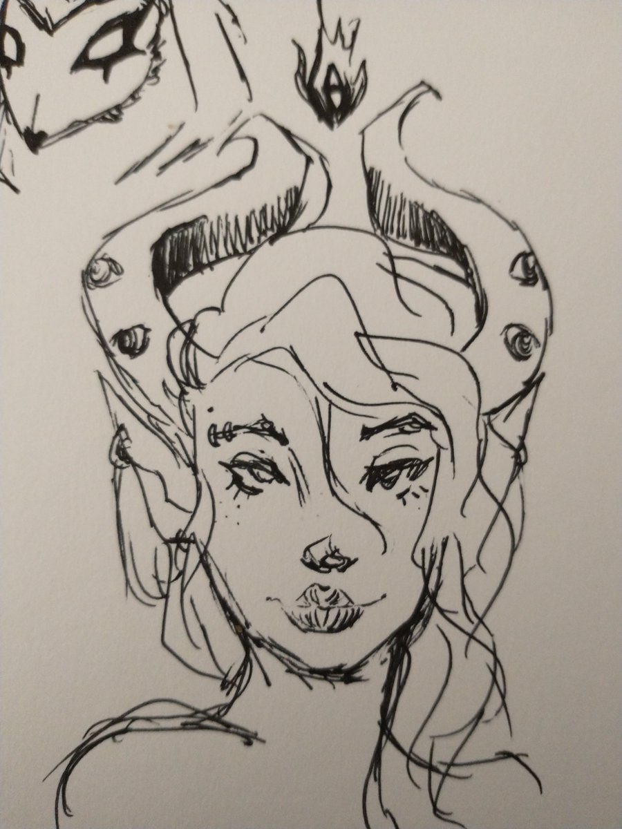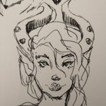 It was originally my "Get high and draw a self portrait with your feelings on your sleeve" sketch, but I guess it ended up being a cool tiefling design so ¯\_(ツ)_/¯ #DnD#dndart