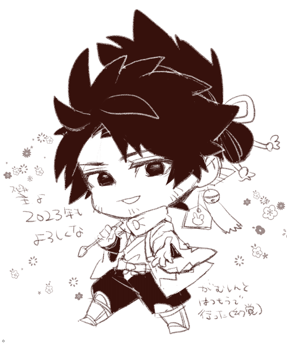 1 4 なんか今日はペンがいい感じに動いたので絆お祝い絵描いた 23/02/04 03:44