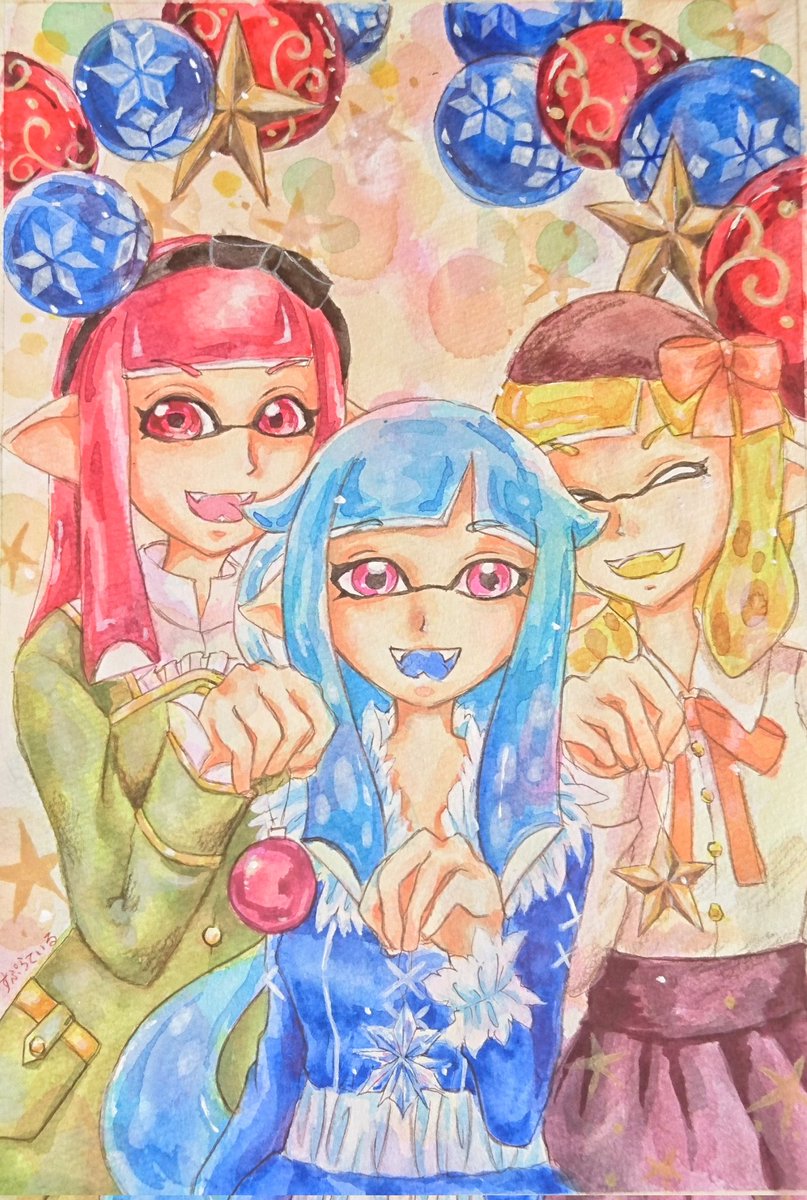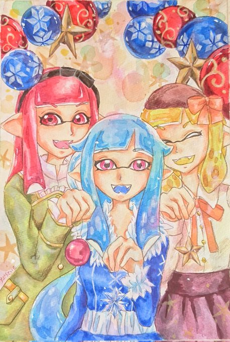 もうすぐクリスマスなので、せっかくなのでこのアカを始めて一年目に描いたよそ様を…… クリスマス企画でなんと、めかぶさんの子を描かせて頂く機会があったのです✨🙏 この時はデジタル一切描けなかったので、パネルに水張りしてアクリル絵の具などで描いてますm(_ _)m✨