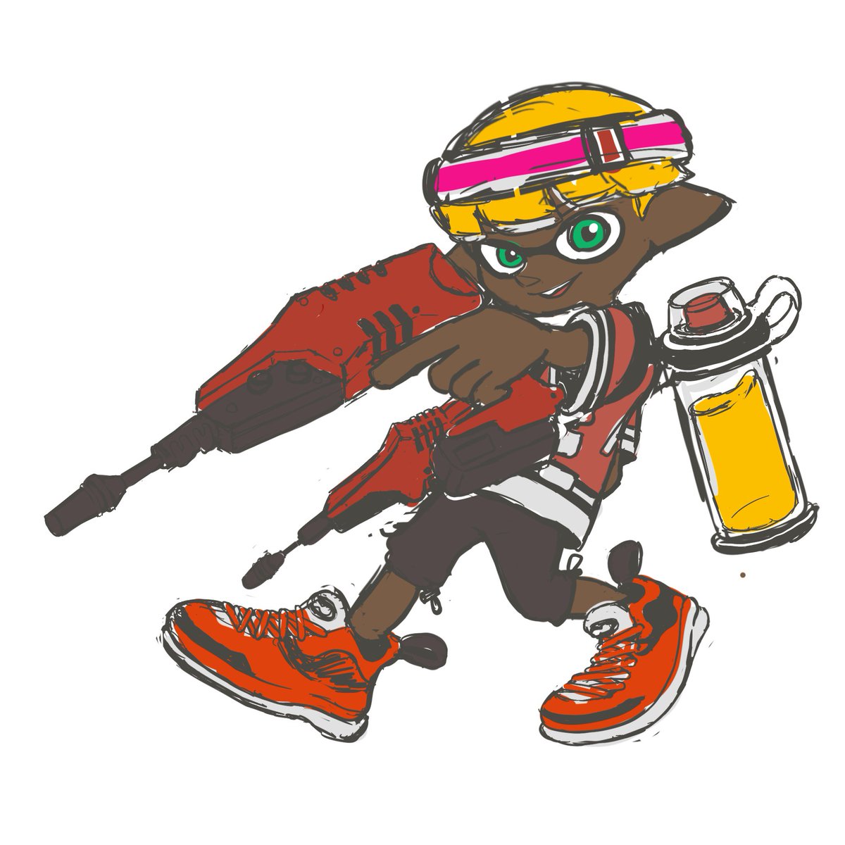 フォロワー333人のアイコン企画のときにイカガール描かせてもらったスパッタリー使いののんちゃさん!そのときからずっとツイート見てくれて本当に嬉しい!今回も赤スパ描くの楽しかった!