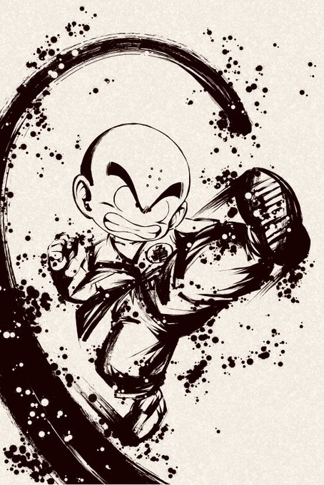 金箔クリリン #ドラゴンボール #墨絵 #イラスト
