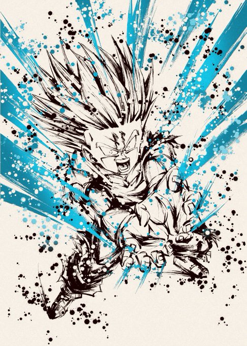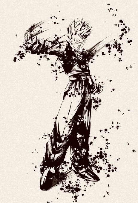 金髪学生 #ドラゴンボール #墨絵 #イラスト