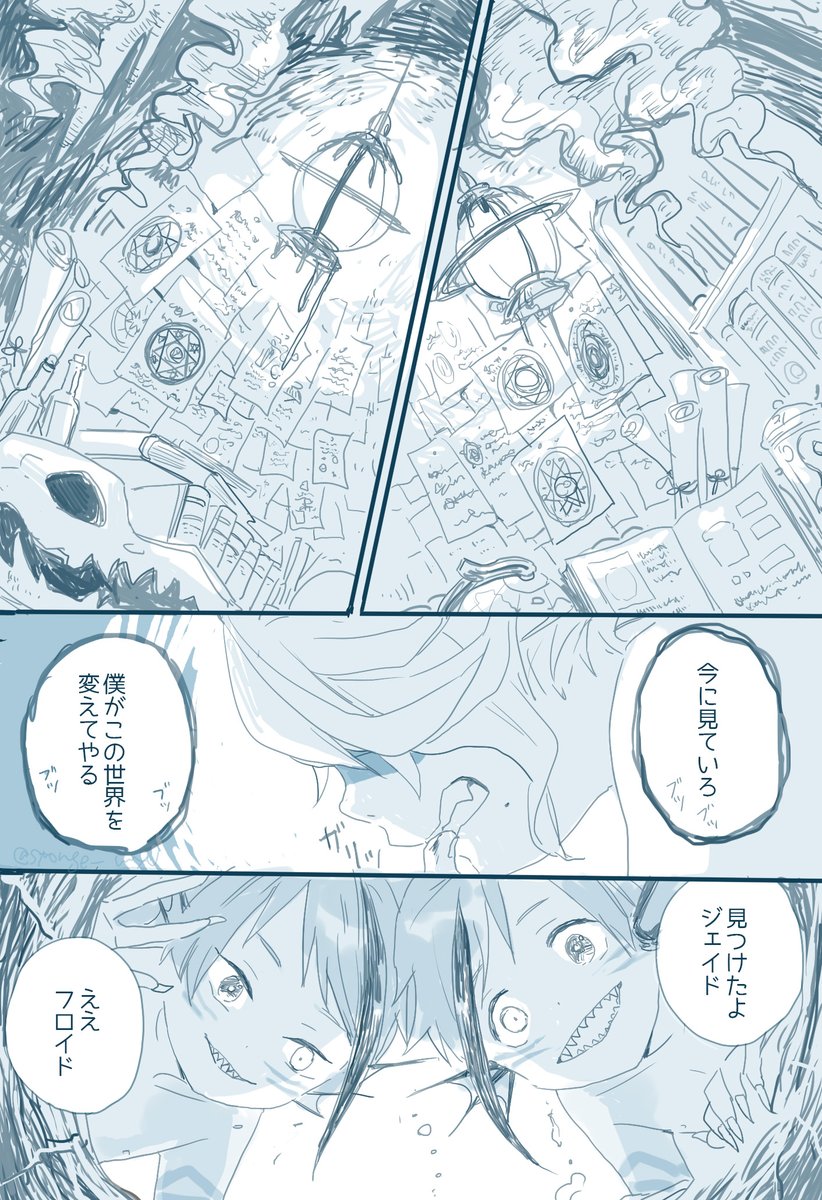 44 192 すいませんなんかおかしかったので上げなおし… 三章とパソストもろもろから妄想した双子とアズールのなれそめ妄想まんが (捏造注意)(ショタ双子が描きたかっただけ) #ツイステファンアート 20/05/08 19:22