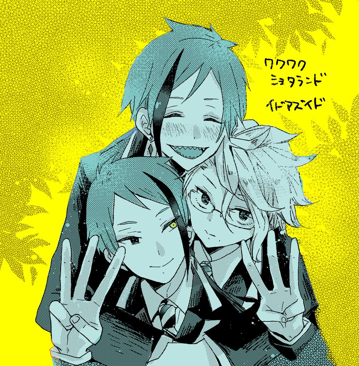 豆イベントのお互いの実力を認め合ってて全力でやりあうアズールとジェイドの悪友感がすごくよかったな~っていう記念絵 やっぱりスリーマンセルは能率的ですね! #ツイステファンアート