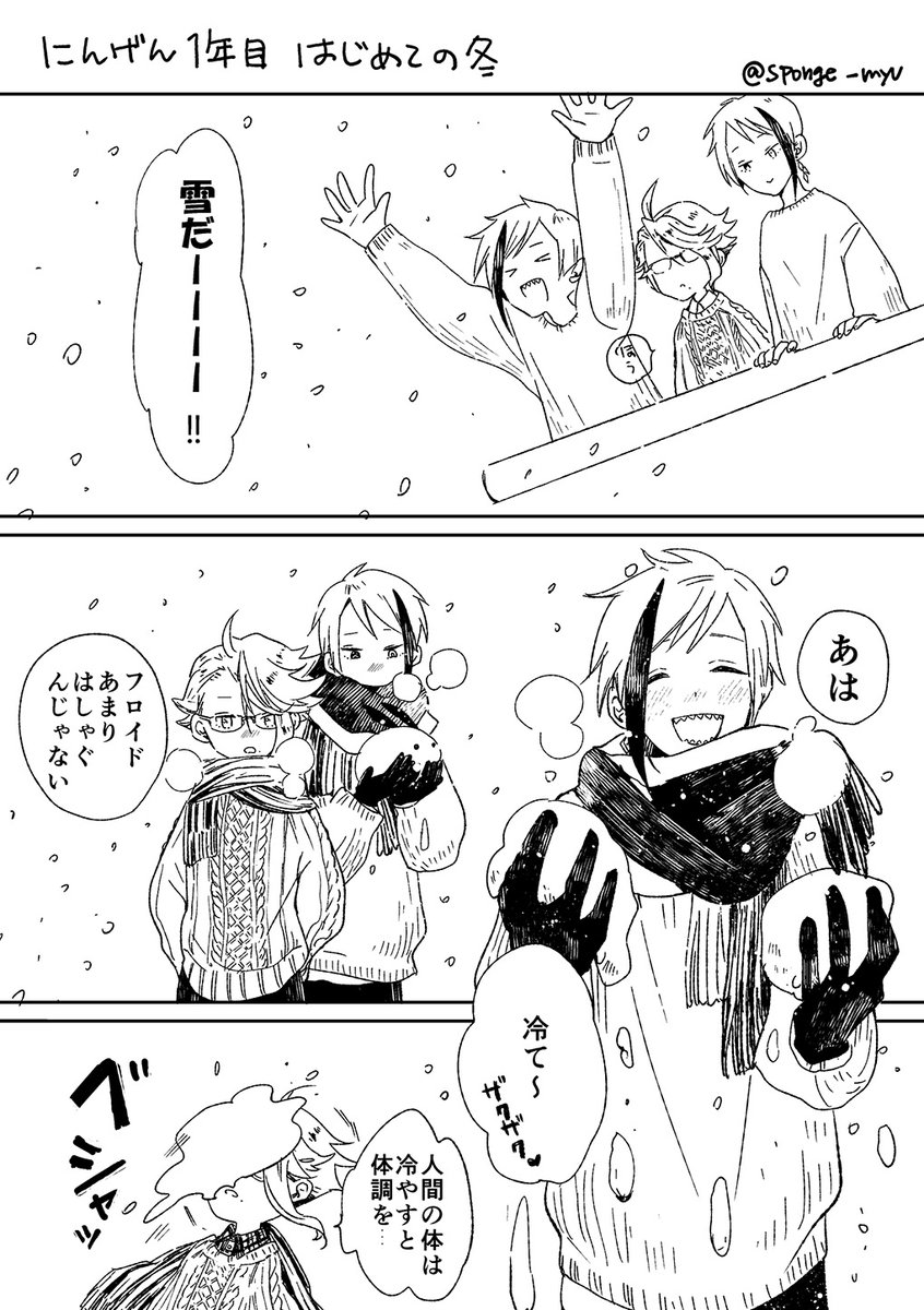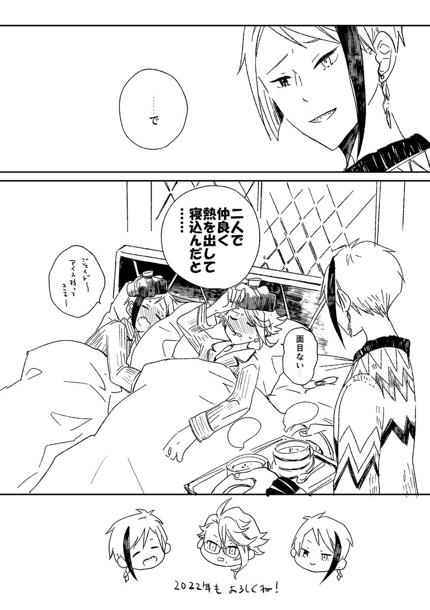 あけましておめでとうございます!2022年もよろしくお願いします! なんだかんだでフロチャンを構っちゃうアズとそんな二人をほほえましく見守るジェ。